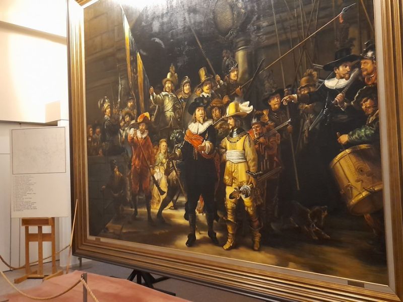 Na de koffie zijn we naar de expositieruimte van Madrid gegaan waar we eerst een video presentatie te zien kregen over de Nachtwacht. Schilder Jan van der Horst heeft de Nachtwacht van Rembrandt nageschilderd op ware grootte (390 x 480 cm), wat het bekijken zeer de moeite waard was. Bijzonder was ook de Nachtwacht gecreëerd d.m.v. diamond painting (153600 steentjes).
